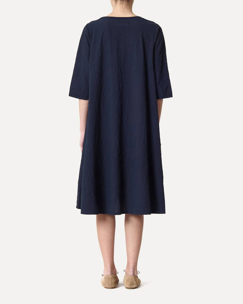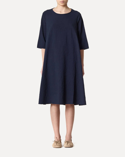 ABITO TUNICA CON SCOLLO ROTONDO E MEZZE MANICHE IN TESSUTO TINTA UNITA CON ONDE STROPICCIATE