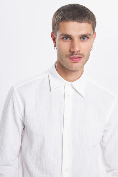Realizzata in garza di cotone stropicciata per una sensazione morbida e strutturata, questa camicia classica presenta un colletto regolare per uno stile senza tempo e disinvolto. Composizione: 100% Cotone