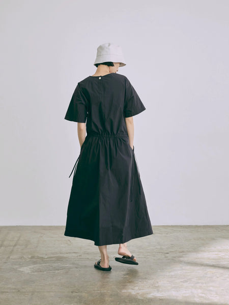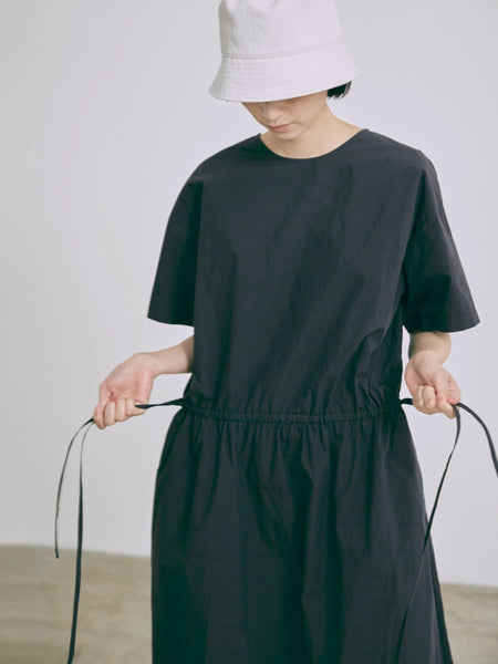 Un abito che si presta a essere modellato liberamente grazie alla coulisse in vita. La coulisse è regolabile, permettendoti di trovare la vestibilità che preferisci. La silhouette semplice e la vestibilità raffinata esaltano la personalità di chi lo indossa. Questo materiale originale è tessuto con filato di nylon nell'ordito e filato di cotone nella trama ad alta densità. Si tratta di una miscela di cotone e nylon leggera e piacevolmente fresca. Questo nuovo materiale è stato rinnovato e introdotto per la stagione Primavera/Estate 2026.