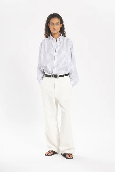 Realizzata in popeline gessato naturale e impreziosita da un colletto button-down, questa camicia presenta una vestibilità oversize con una silhouette maschile, per uno stile strutturato e disinvolto. Composizione: 100% Cotone