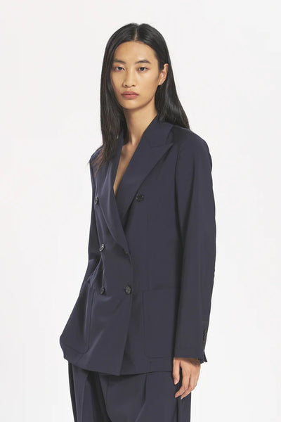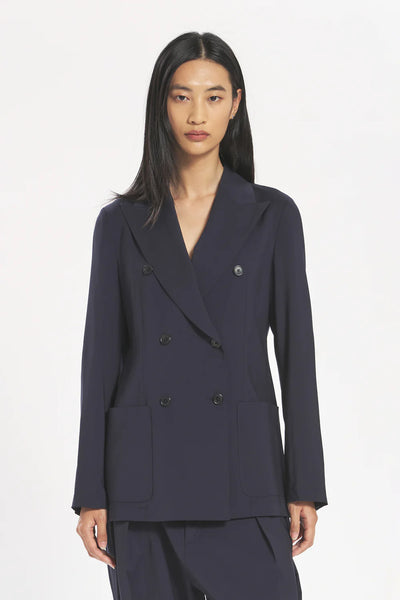 Realizzato in lana Tropical antipiega, questo blazer slim fit offre una struttura raffinata e una vestibilità facile e traspirante. Con una silhouette doppiopetto, presenta revers a lancia e tasche applicate. Armatura a tela - Grammatura: 230 gr/ml - Composizione: 100% Lana Vergine