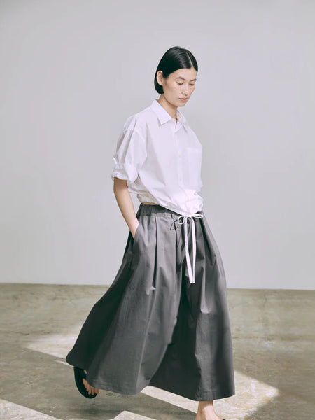 Questa gonna a trapezio è caratterizzata da pieghe voluminose e di grande effetto. L'elastico in vita e il cordoncino ne migliorano la vestibilità. L'orlo alla caviglia le conferisce un aspetto sofisticato. Le semplici tasche laterali aggiungono un tocco di stile. Questo tessuto twill si caratterizza per la sua finitura lucida e la sua consistenza liscia e morbida. Si tratta di un tessuto chino.