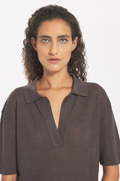 – Colletto stile polo e scollo a V