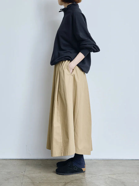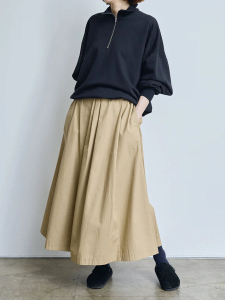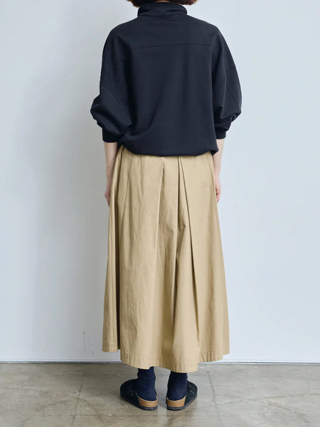 Questa gonna è caratterizzata da un volume ampio e pieghe. La vita è elastica e dotata di coulisse per una vestibilità aderente.
