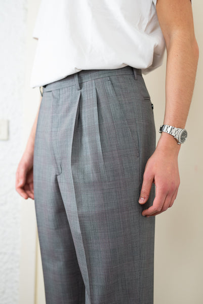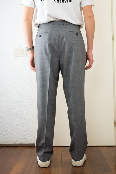 Pantalone Principe di Galles in fresco lana, modello classico con pencies, gamba larga.